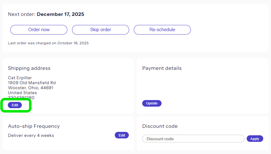 If the address is not changed before your order ships, we are unable to provide a replacement or a refund.